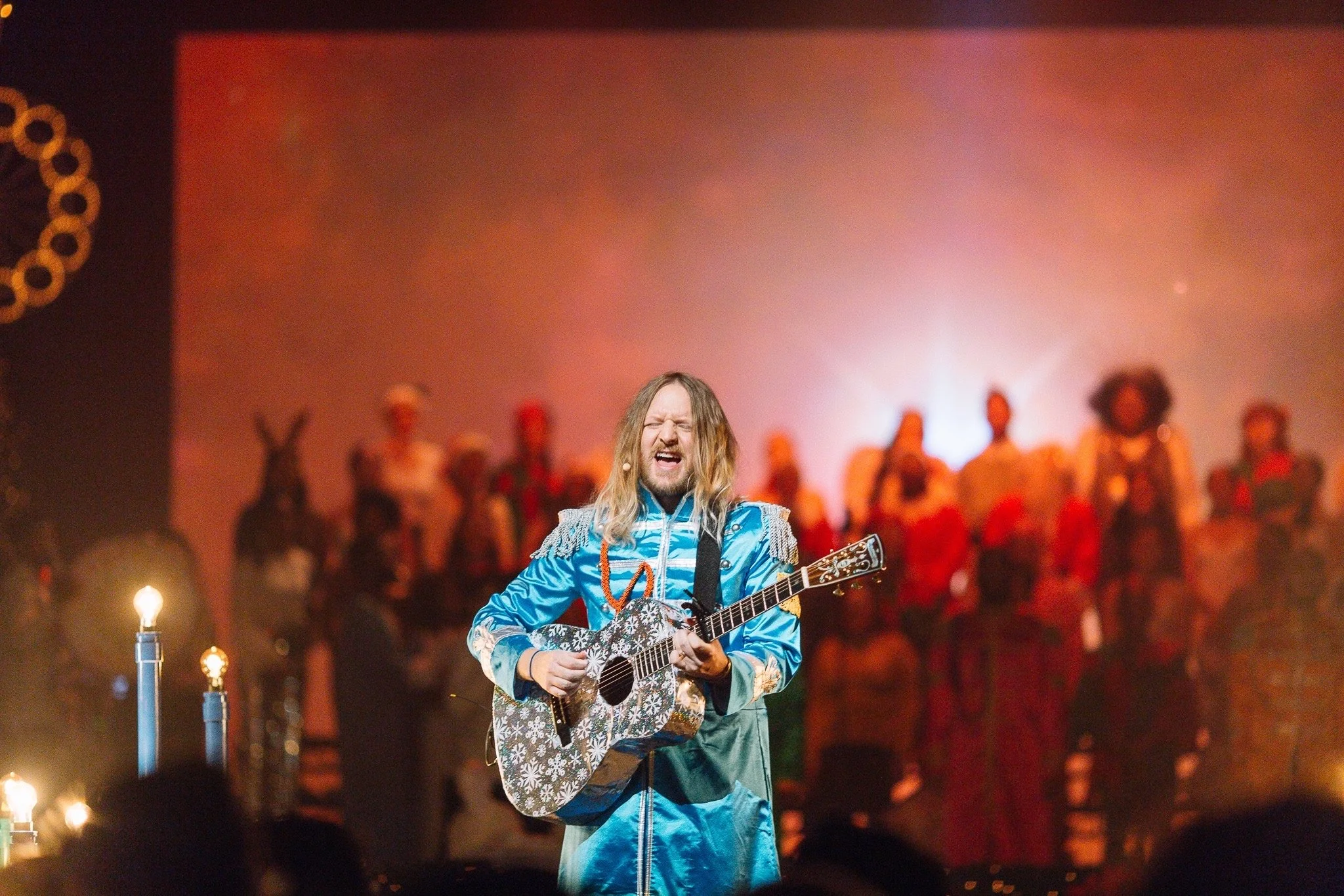 An exhilarating musical presentation for Sunday Night Live starring Nathan Finochio. Nathan Finochio, is an author, a teacher, founder of TheosU and TheosSeminary as well as a worship leader and songwriter for his bands Royal Royal and Le Voyageur. This creative presentation tells the story of Christmas through the lens and songs from The Beatles, Sgt. Pepper’s Lonely Hearts Club album. Creative Directed and Produced by Lauren Brook. Art Directed by Dan Brook.